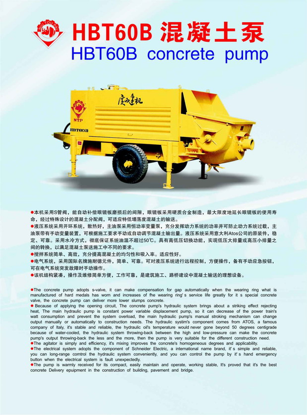 本类产品结构紧凑,操作及维修方便,是建筑施工、路桥建设中混凝土输送的理想设备。