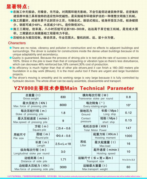 该机为液压控制,移动灵活,作业范围大,工作噪声小,整机装、运、拆十分方便。